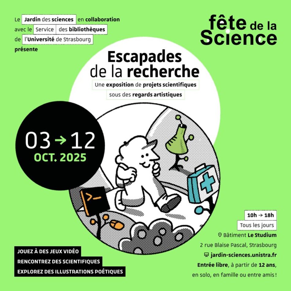 À l’occasion de la Fête de la science 2025, cette exposition invite à découvrir la recherche autrement : des projets scientifiques transformés en illustrations poétiques et en jeux interactifs, fruits de l’envie de partager la science sous un nouveau jour.